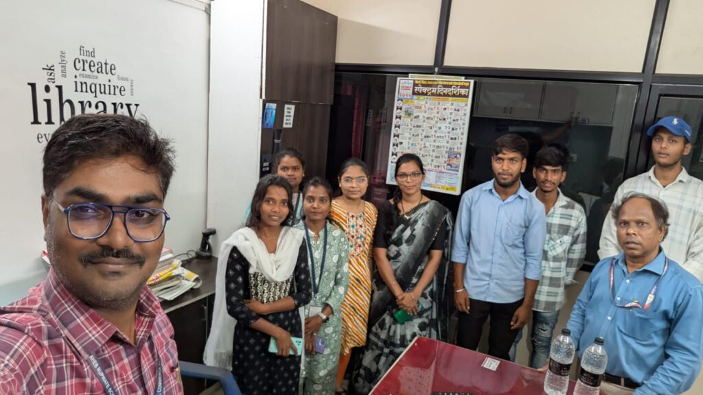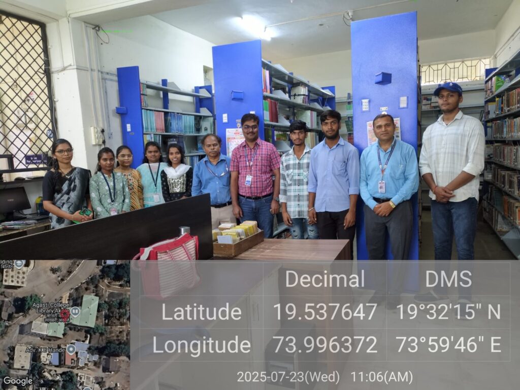 Additionally, students were informed about the newly developed library portal, and were guided on how to explore academic content relevant to their discipline. Mr. Bachhav also briefed students on library rules, available facilities, and services that can be availed at the Agasti Knowledge Resource Centre.